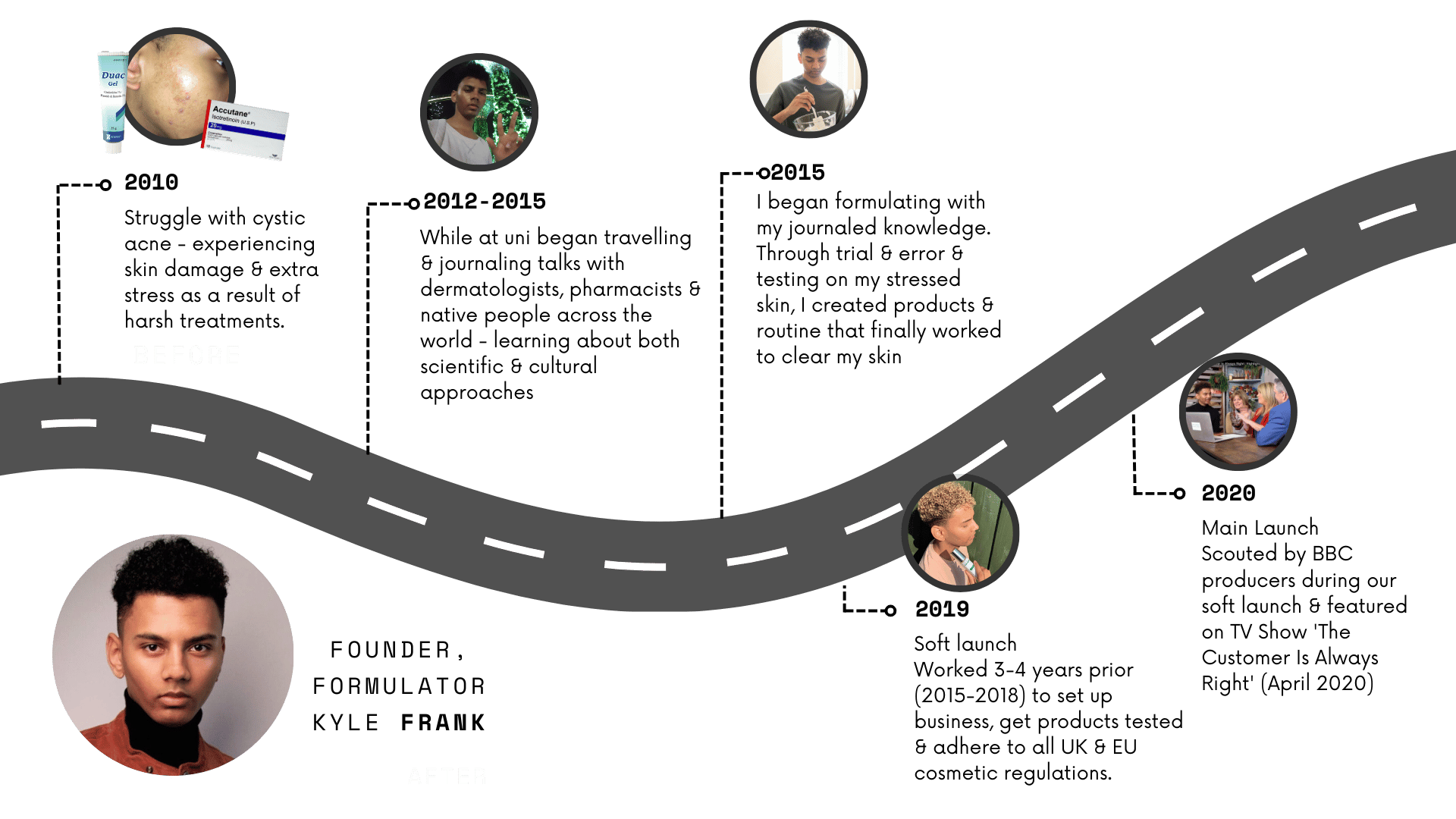"Personal hands-on experience and being able to test ingredients on my acne skin state has given me in-depth knowledge of how the skin reacts and all the aspects that go through the skin clearing process." - Frank