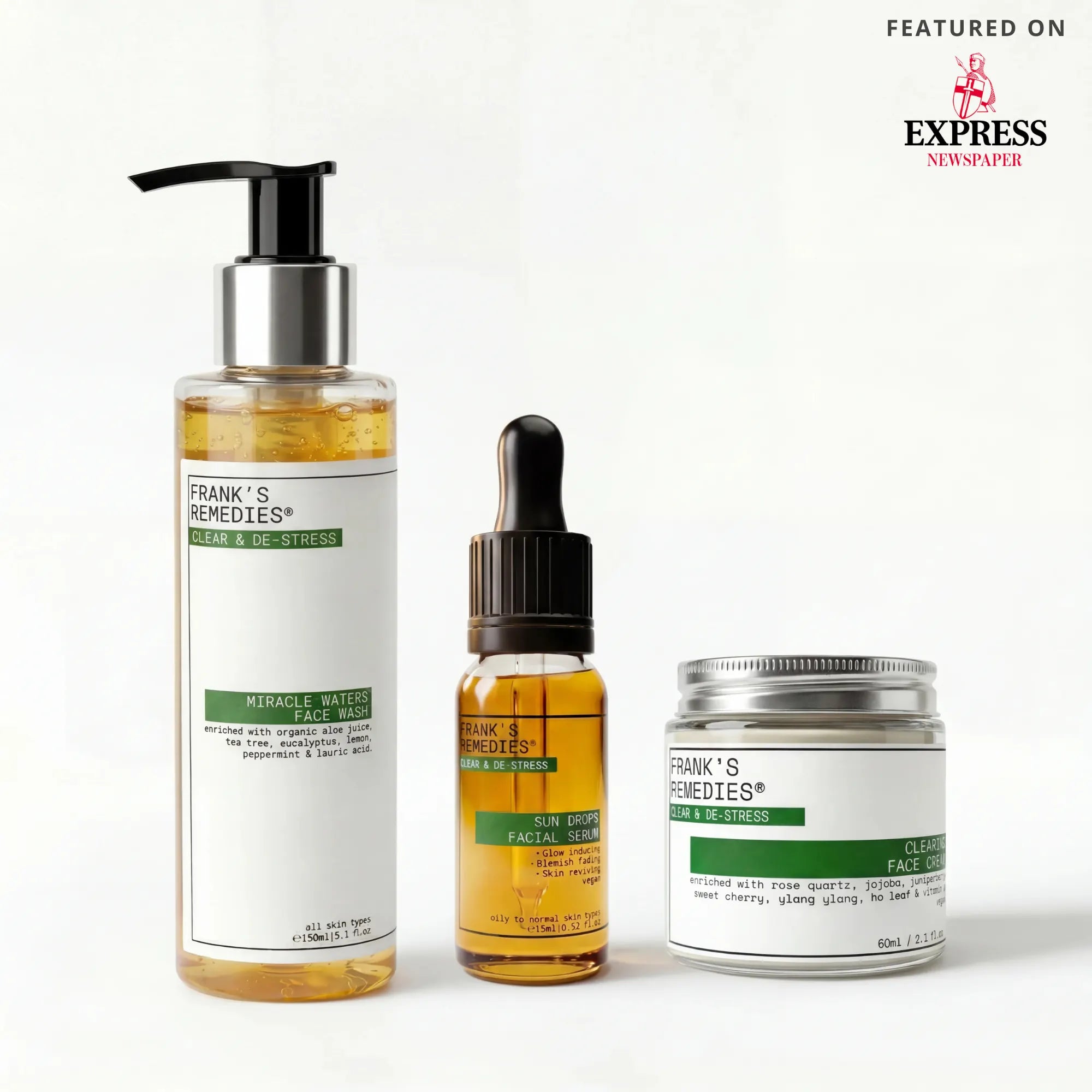 I am so thankful for Frank's Remedies - I recently ran out of face wash and then disaster struck...by way of multiple spots to my face! When I don't use these products I really notice the deterioration of my skin. The face wash and sundrops are my EVERYDAY ESSENTIAL items and make a huge difference to my skin and confidence! I am newbie to the cream but so far, I love it - this Glow Kit is such good value for money too! Thank you!